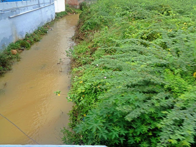 ஆட்டோவில் ஏறி செல்லத் தொடங்கியதும் ஒரு கணபதி ஆலயம் ஒட்டி ஒரு வாய்க்கால் உடனே க்ளிக். ஆனா பாருங்க கோயில்லருந்து குழா நீட்டிட்டுருக்கு.....கழுவி விடும் தண்ணி இதில் விழும் போல....பிள்ளையாரப்பா!! ஏம்பா!!!